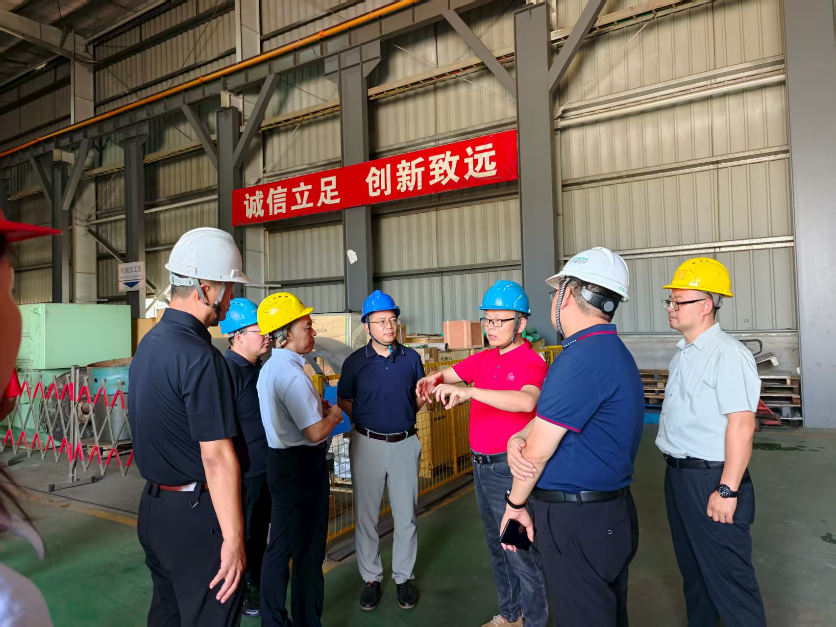 郭總向西門子能源代表團講解環(huán)宇通福建分公司在真空浸漆、動平衡校正等方面的技術和機器