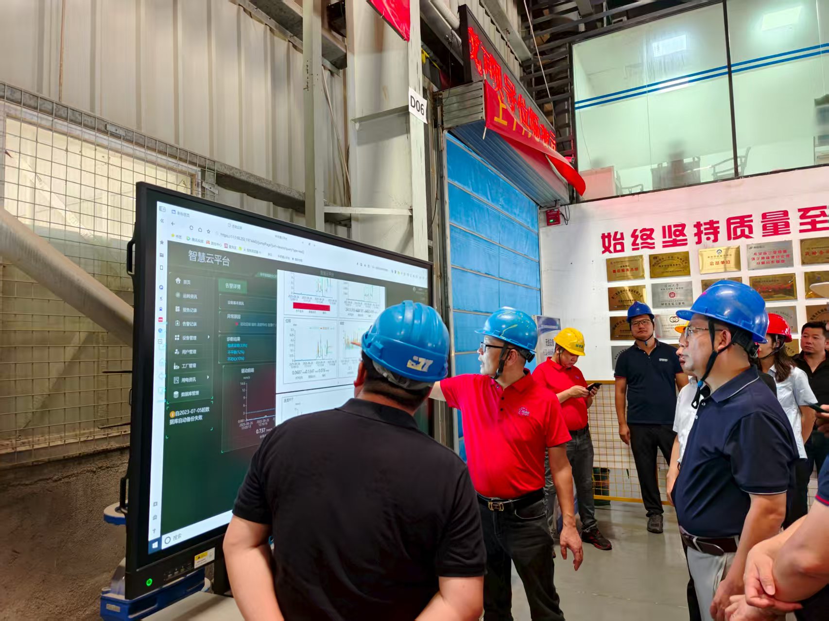觀看講解在線監(jiān)測系統(tǒng),參觀倉庫講解配件,實地了解了環(huán)宇通在工業(yè)服務領域的技術能力和項目實施情況